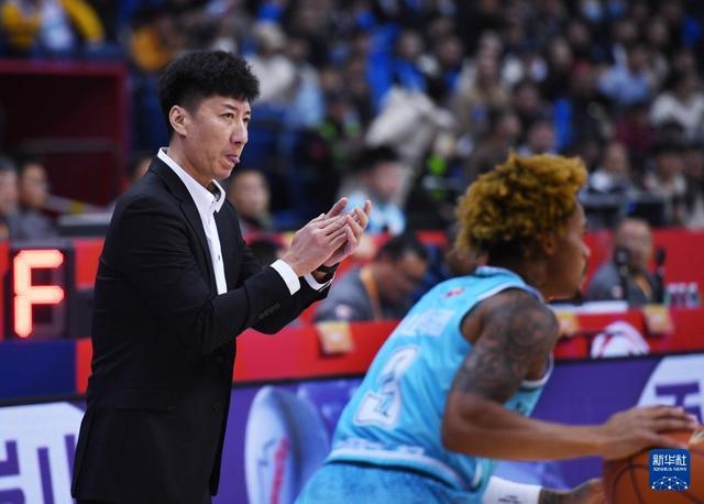 12月15日,青岛崂山啤酒队主教练刘维伟(中)在比赛间隙向球员布置战术。新华社记者 李紫恒 摄