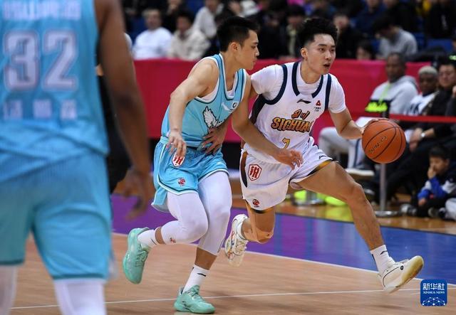 12月15日,四川丰谷酒业队球员段睿骐(右)在比赛中持球进攻。新华社记者 李紫恒 摄