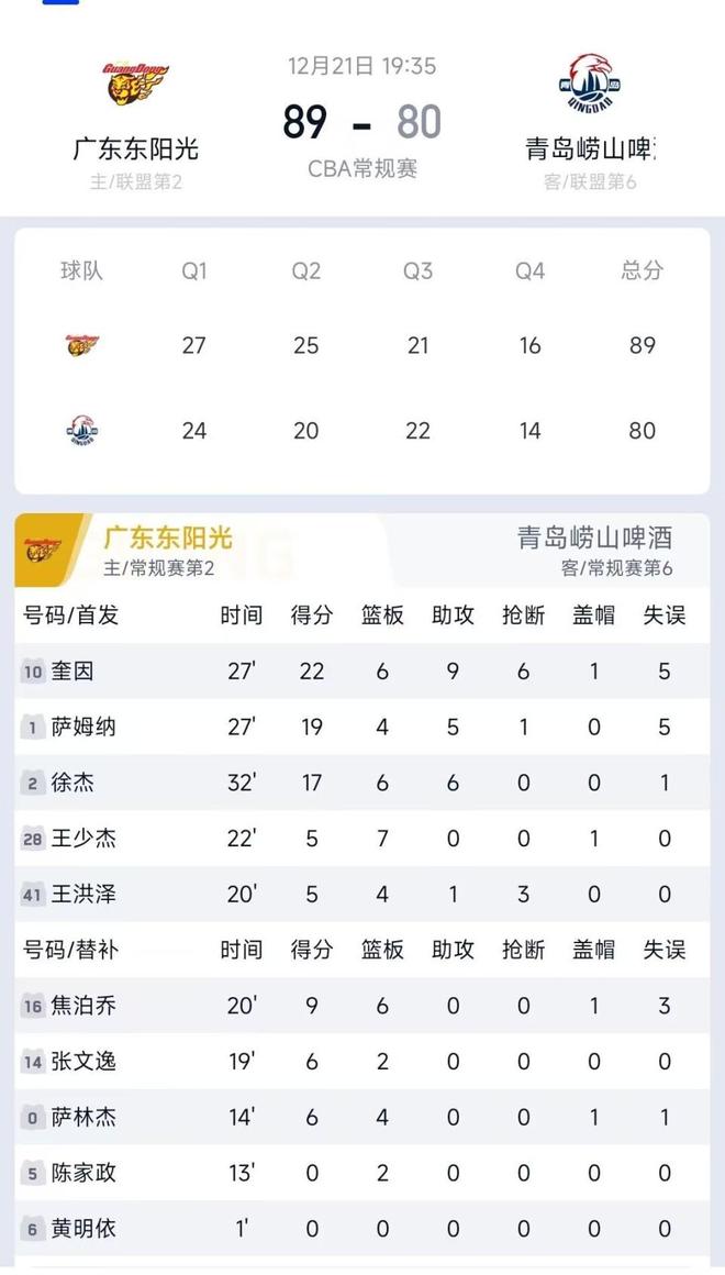广东男篮高价的外援,占用大量球权,加上胡明轩、张皓嘉等主力缺阵,广东男篮国内球员只能依靠徐杰的控场,徐杰也不负众望17分6篮板6助攻!当然,广东男篮外援爆发也是取胜关键,奎因22分(三分球7中5)、萨姆纳19分。