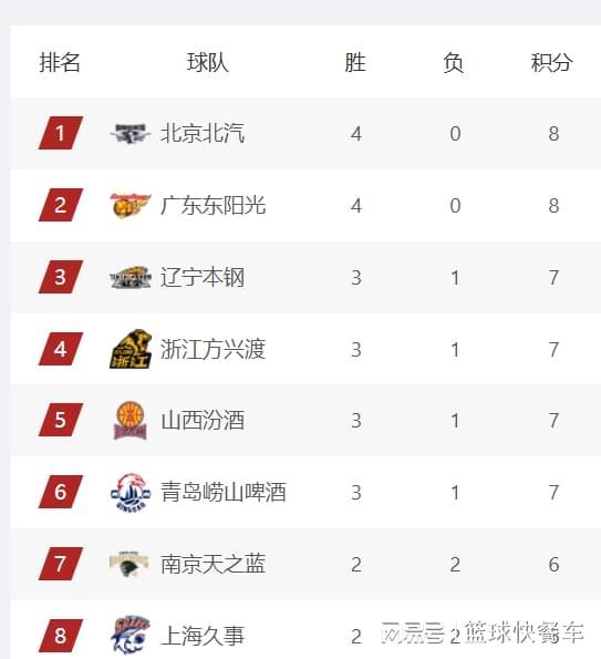 目前,CBA常规赛已经打了4轮比赛,积分榜格局已经逐渐显现。积分榜第一名的是北京队,他们开局取得4连胜,以4胜0负的战绩,排在积分榜第一位的。11冠王广东队,这一轮比赛他们面对的是青岛队,双方此前都是保持不败金身。广东队这一场比赛主场作战,在萨姆纳、徐杰的带领下,广东队最终以89-80击败对手,成功收获4连胜,这一场比赛过后,广东队杀进积分榜第2,截止到目前,全联盟只剩下北京和广东还没有输球。 排在积分榜第三名的是辽宁队,作为曾经的四冠王,辽宁队本赛季阵容实力下滑。不过,从辽宁队开局的状态来看,他们即便不是冠军有力争夺者,但也是季后赛级别的强队。卫冕冠军广厦这一战迎战上海队,这也是被看成是两大顶尖强队的对决,最终广厦占据上风,他们以97-90击败了上海队,成功收获两连胜。这一战过后,广厦战绩变成3胜1负,直接杀回积分榜前四名。 排在第五名的则属于山西队。山西队这一轮比赛面对山西队,尽管他们在开局阶段慢热,一度落后对手15分之多,不过,在下半场比赛,山西队还是顶住压力,最终逆转掀翻对手,成功拿到赛季第三胜。这一场比赛过后,山西队的战绩也变成3胜1负,直接上升到积分榜第5的位置。排在积分榜第6的是青岛队,他们在输给广东队以后,结束三连胜之际,排名也从积分榜第2下滑到第6。积分榜第7名则属于同曦队,战绩为2胜2负。 上海队这一轮比赛,他们输给了卫冕冠军广厦,球队的战绩变成了2胜2负,排名也有所变化,排在了积分榜第8的位置。积分榜第9名则属于吉林队,上一轮比赛,他们还排在积分榜第5的位置,不过,随着山西、广厦等队相继赢球,吉林队的排名已经跌出前八了。而排在第10名的是新疆队,他们的战绩是2胜2负。第11名则是北控队,而宁波队紧随其后,排在积分榜第12名,以上这12支球队,他们的胜率都超过5成。 排在积分榜第13名的是浙江队,他们的战绩是1胜3负,第14名则属于福建队,战绩也是1胜3负。而排在积分榜第15名则是山东队,他们的战绩是2胜1负,第16名则属于广州队,战绩也是2胜1负,这两支球队由于少赛一轮的缘故,整体排名上较为吃亏。而排在积分榜第17名则是深圳队,他们的战绩是1胜3负。第18-20名则属于江苏、四川以及天津,这三支球队截止到目前还没有赢球,战绩均为0胜4负。 附:CBA积分榜最新排名 1-5:北京、广东、辽宁、广厦、山西 6-10:青岛、同曦、上海、吉林、新疆 11-15:北控、宁波、浙江、福建、山东 16-20:广州、深圳、江苏、四川、天津