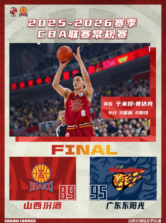 战报遗憾失利山西汾酒8995不敌广东东阳光
