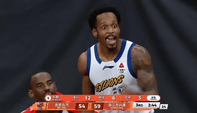 这场比赛,赵睿可谓倾尽所有,他打了足足33分钟,投篮18中9得到22分9篮板6助攻的全面数据,最后一节连续通过突破得分,甚至多次摔倒在地,无奈北京外援杰曼始终站不出来,不是投篮不中就是失误,反观广厦这边,孙铭徽带上面具后,战力爆表,14中8,三分5中2砍下22分5助攻,而他们的外援,上赛季FMVP小巴里-布朗更是直接超神,末节两队比分战平时,他连续命中2记高难度三分,再加上抢断杰曼,上空篮命中,个人连得8分直接帮助球队带走胜利。