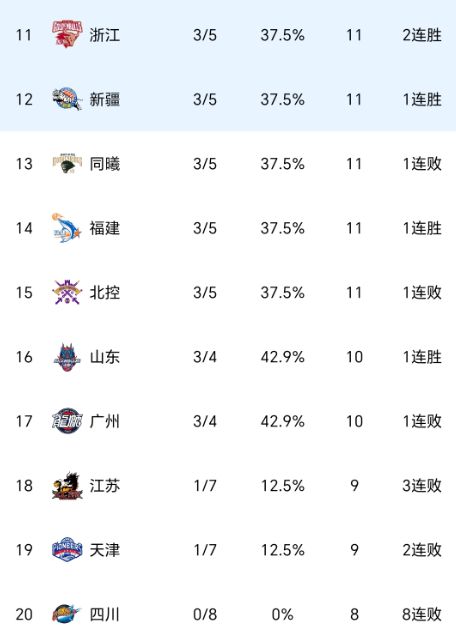 8连胜!8连败!CBA疯狂一夜:全胜剩1队广厦助攻广东附最新排名