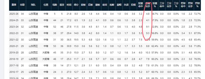 23-24赛季,陶汉林场均还能获得9.1次出手机会。邱彪接手山东队教鞭后,他的出手机会直线下滑。 24-25赛季,陶汉林场均出手4.1次。本赛季,5次出场后,他场均出手为4.8次。能看出来,陶汉林在邱彪的战术体系中,战术地位并不是很高。
