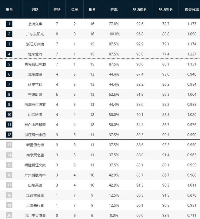 从数据来看,两队外援纷纷火力全开,深圳队的卡巴13分1板2帽、约翰逊12分6板6助、史密斯11分3板2断,都是得分上双,北控队也是一样,佩里14分6板1助2断、西伯恩13分1板1助、里勒12分2助。 下半场比赛,北控队打得更好,尤其第四节顶住了深圳队的追分势头,最终105-101险胜。 最新积分榜排名如下——
