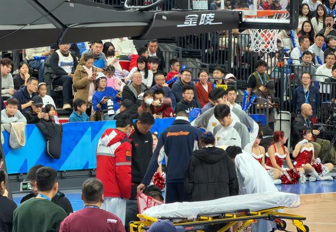 担架车也进入场内,最终徐杰被队友背出了场外,徐杰这场比赛只打了14分钟,3中0拿到1分1篮板1助攻。