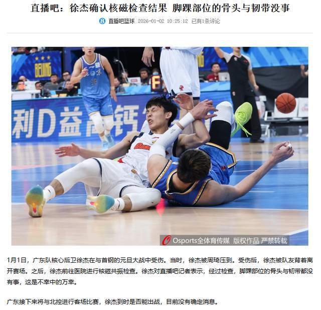 那么,徐杰的伤情到底怎么样了呢?1月2日上午10点多,根据直播吧报道,徐杰亲自确认了自己的伤情,经过检查,脚踝部位的骨头与韧带都没有事。看来,真的是虚惊一场了。