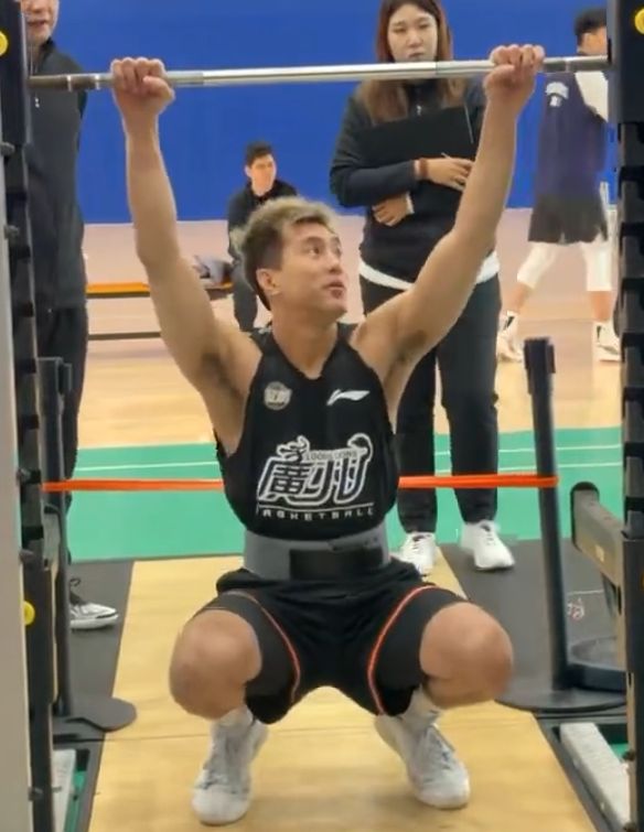 郭艾伦的体重是84.1公斤,和上赛季的85公斤下降了0.9公斤,说明他的适当减重是成功的。减重的成功,也让郭艾伦的弹跳变得更为出色。他的原地起跳摸高是310cm,虽然比上赛季的317cm有所下降,但是这对于一个32岁,身高1米91的老将来说,已经是非常优秀的成绩了。 郭艾伦的站立摸高是250cm,臀展为197.5cm。负重深蹲郭艾伦完成了20个标准动作,因此拿到满分。可见郭艾伦下肢力量的稳定性,足以证明他在这个休赛期绝对没有少练!