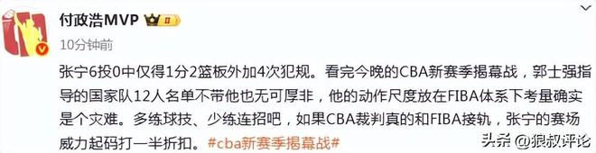 媒体人:张宁的动作放在FIBA体系下考量是灾难多练球技少练连招吧