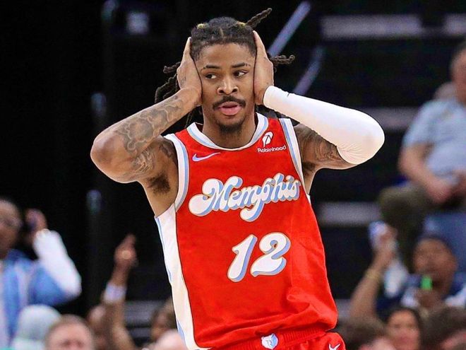活脱脱的摆烂神器。我还记得3年前,NBA在22-23赛季MVP榜单首期排名中,莫兰特曾力压字母哥,排名第一。而那个赛季,莫兰特前半程MVP排名没掉出过前五,那只是他生涯第四年,意气风发,前一赛季被勇士(22年总冠军)淘汰出局,莫兰特多次公开呛声勇士,和克莱格林对喷,俨然不把任何人放在眼里。也就是从那个赛季起,莫兰特成了NBA最嚣张狂妄的球队老大。经典言论“我们在西部没对手了”,叫嚣爱德华兹表现不如自己,场外直播惹是生非就算了,上赛季还在比赛中多次做出咬掉保险栓+投掷+捂耳朵的动作。