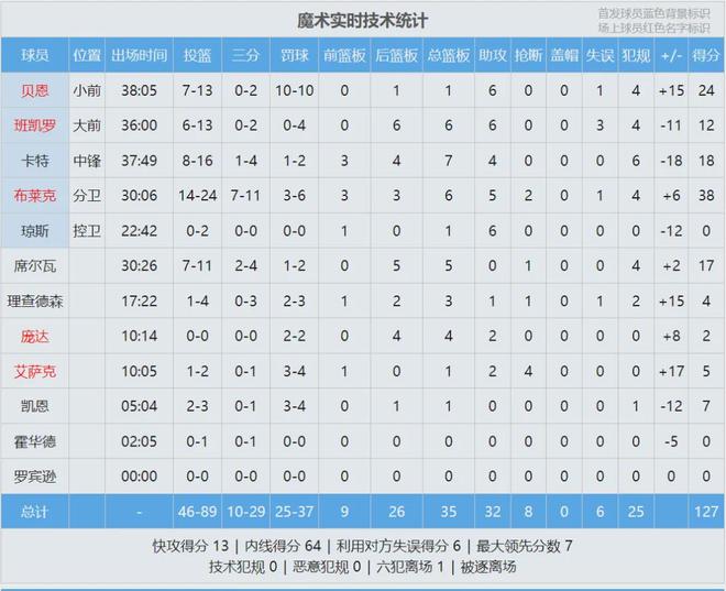 魔术今天能够获胜,安东尼-布莱克功不可没。此役布莱克投篮24中14,三分11中7,罚球6中3,狂轰38分6篮板5助攻2抢断。班凯罗身为魔术核心,却被队友带飞,自己躺赢了一场。魔术上一场不敌黄蜂,班凯罗13中4仅得13分。