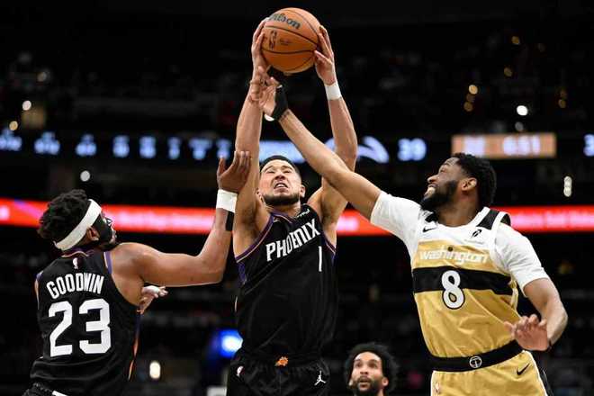 马威禁赛!太阳3人20+大胜奇才获4连胜布克22分狄龙26分