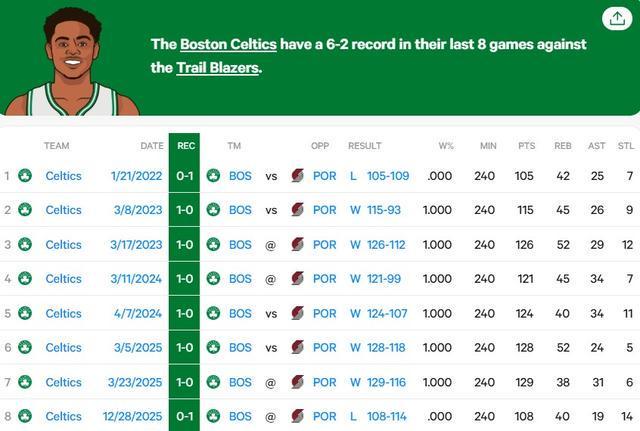 北京时间今日,在NBA常规赛中,波特兰开拓者在主场114-108逆转波士顿凯尔特人,终结三连败。