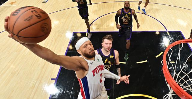 坎宁安27+11东契奇30+11活塞22分大胜湖人
