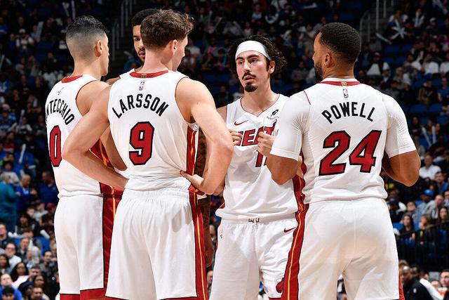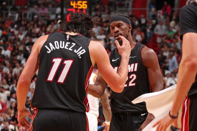 那场比赛,小海梅打了13分钟,3投3中,拿到6分2篮板2助攻2抢断。 事实证明,能让巴特勒给出这样的“高度评价”,小海梅确实很特别。 新秀赛季,这位“油腻”的“老秀”代表热火出战75场比赛,其中20场首发登场,场均可以贡献11.9分3.8篮板2.6助攻1次抢断,并且仅出现1.5次失误,只有2.2次犯规。 那年的最佳新秀竞争中,他排名第四,最佳第六人竞争中,他排在第9。毫无悬念的,小海梅跻身新秀一阵。 但命运之神微微一笑,打算给这个融入联盟过于顺利丝滑的倔强男孩上上强度。 于是,谁都没有想到,在职业生涯的第二个赛季,这个聪明、狡猾、成熟的家伙,一头撞上了迟来的“新秀墙”。 2024-25赛季,小海梅出战了66场比赛,17场首发,在新秀赛季大放异彩之后出战时间不升反降,除了篮板之外,各项数据也都出现小幅下滑。 他在场上好像并没有做错任何事,但就是在逐渐失去教练组的信任。