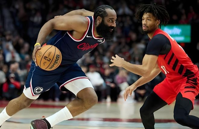 本赛季来看,哈登的表现还算不错,场均26.1分4.9篮板7.9助攻1.3抢断,三项命中率43.3%+36.7%+88.8%。虽然不及巅峰,但这也是他自火箭之后的最佳表现了。 从11月中至12月底,11场比赛中更是打出了场均31.8分6.8篮板8.4助攻,不管怎么看,这都是一份联盟第一梯队的后卫成绩。 但尴尬的是,即便哈登打得足够出色,似乎依旧扛不起这支快船。 11月中面对独行侠,哈登打出41分14篮板11助攻的超级大三双,是快船队史第一次40+大三双,同时哈登也一举超越拉里·伯德,成为NBA史上年纪最大的40+三双先生。 当场比赛哈登出战51分钟,才在双加时里止住六连败的快船;但这一场似乎也像是把他掏空了,接着背靠背对上76人,明显看出哈登体能不佳,首节17分后就没能延续进攻势头。 更难接受的是,即便如此,哈登也本有机会翻盘比赛,最后出手三分时很明显被对手点到手肘,但裁判漏判之后,导致快船背靠背两战都在最后关键时刻错失胜利。
