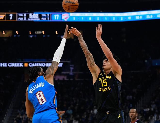 北京时间1月3日,NBA常规赛,勇士坐镇主场迎击雷霆。本场比赛之前,勇士18胜16负排名西部第8,这段时间,库里的状态很不错,过去9场比赛场均砍下 30.1分、4.8助攻、4.4篮板,投篮命中率 46.3%,三分命中率 40.0%,罚球命中率 93.0%,场均出战 33.7分钟。二当家巴特勒虽然产量一般,但效率同样很高,接近180俱乐部了,勇士就是角色球员自主进攻能力有限。另一边的雷霆队,本场比赛之前,29胜5负排名西部第一,他们仍然是今年最有冠军相的一支队伍,攻防效率都在联盟前5,全员都有一定的自主进攻能力。