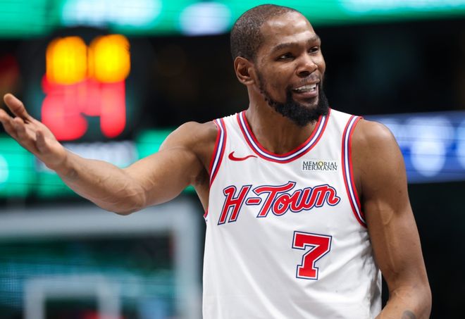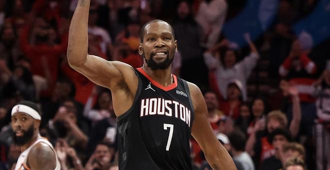 NBA比赛精彩继续,今天火箭队主场VS太阳队,两支球队话题性十足,杜兰特去年和太阳队闹掰,此役则是对战老东家。开局太阳队状态出色,连续2节压着火箭队打,也取得了两位数的优势。但下半场火箭多点开花,最终扳平比分。最后时刻,杜兰特用不讲理的三分绝杀,带领火箭队100-97险胜太阳。绝杀!都说你抱大腿,今打成联盟第一,这是你37岁拿9000万的原因。