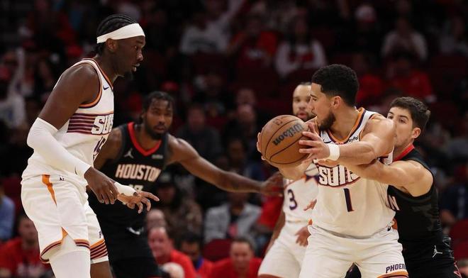 北京时间1月6日,NBA常规赛,火箭坐镇主场迎击太阳。本场比赛之前,火箭21胜11负排名西部第5,过去5场比赛他们4胜1负,状态还不错。和上赛季相比,火箭本赛季的战绩并没有明显提升,但毫无疑问的是,他们的上限绝对是比上赛季更高的,更有机会去冲击总冠军了,杜兰特到来之后,火箭的关键球能力肯定更强一些,季后赛也会打得更有条理,更加强硬。另一边的太阳队,本场比赛之前,21胜14负排名西部第7,没想到太阳这个赛季依然具备季后赛实力,送走杜兰特和比尔后,太阳靠布克+狄龙打出这个战绩,已经很不容易了。