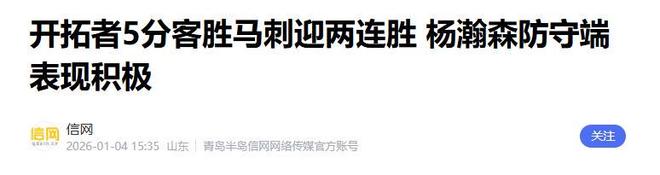 结语 姚明和整个篮坛的“沉默”更多的是欣慰。 2026年开年的连续突破,只是他职业生涯的又一个起点。 接下来,他要面对更激烈的竞争、更密集的赛程和更高的期待。 未来已来,20岁的杨瀚森的篮球之路值得期待。