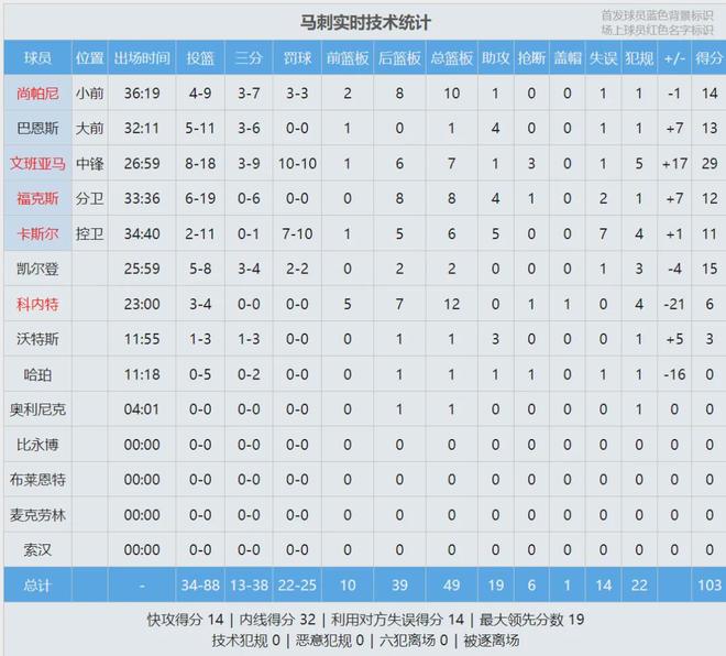 第三节马刺30-29,净胜森林狼1分。三节打完,马刺85-71,文班已经得到23分7篮板3抢断4犯规。第四节决战,森林狼追到个位数,戈贝尔有垫脚嫌疑,被吹了一级恶意犯规。戈贝尔不满吹罚,又被吹了个技术犯规,马刺4罚1掷。
