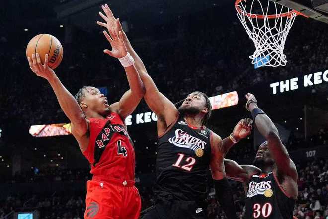 北京时间1月12日,NBA常规赛76人客场对阵猛龙,恩比德与乔治两位核心缺席。76人在最多落后14分情况下,第三节打出36-18攻势反超比分,第四节双方紧咬比分缠斗,谢德命中关键扳平球拖进加时赛。双方加时赛继续鏖战,巴恩斯最后时刻关键两罚一中准绝杀,最终76人加时115-116输给猛龙结束2连胜。
