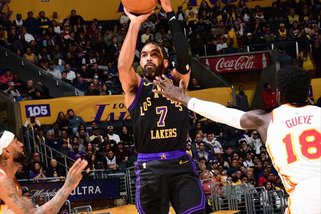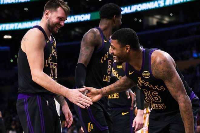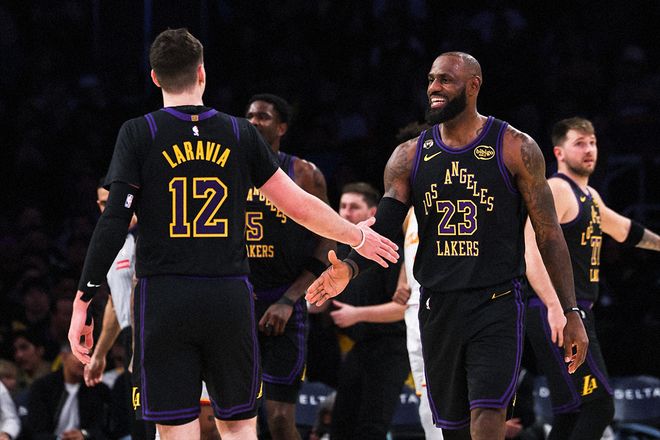 所以,湖人需要一场大胜来给球迷信心,并鼓舞全队低迷的士气。那么,刚刚送走前任鹰王特雷·杨的亚特兰大,无疑成了一个最好的选择。湖人也清楚这一点,所以即便是背靠背,41岁的詹姆斯也选择了继续出战。还有八村塁,本年度首次登场。以及雷迪克突然开窍,重用文森特,开启了新的轮换节奏。比赛开局,效果明显。一波进攻高潮,后面跟着的是另一波高潮。特别是东契奇,在次节引领的一番进攻,直接将分差扩大至19分!这期间,老鹰队奋起直追仍然难以招架;而湖人队的攻势,似是占了天时地利人和,角色球员拉拉维亚的极限压哨三分,也能命中。还有东契奇,竟然上演了强硬封盖……