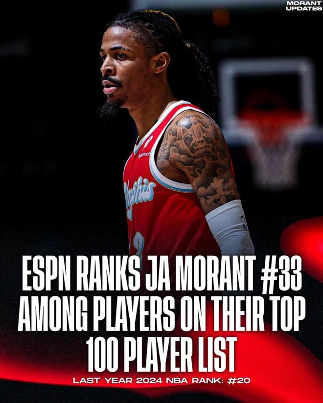 临近常规赛开始,灰熊方面却传来一些坏消息。 据灰熊队记Damichael Cole的最新报道,球队核心莫兰特在近期的一次训练中扭伤了左脚踝,目前他已经被球队列入每周观察,灰熊的季前赛首秀,莫兰特也是穿着一身休闲装场边观战。 既然是每周观察,那么说明伤病情况并没有很严重,但客观说,莫兰特的伤病属性很难不让人担忧。 自从进入NBA以来,他几乎每个赛季都会经历大大小小的伤病,包括左脚踝扭伤、左膝扭伤、左腿筋拉伤、右脚踝扭伤、右膝挫伤等。 于是你会看到,莫兰特的出勤率相当糟糕,进入NBA六个赛季,只有新秀赛季出战了67场比赛,其他没有一个赛季超过65场(出战65场比赛才能参与最佳阵容等荣誉评比)。 其中2023-24赛季,莫兰特一共只打了9场比赛(禁赛+受伤)就赛季报销,随后上赛季,莫兰特也只打了50场比赛,出勤率生涯第二低,季后赛G4也因为臀部扭伤缺席。 除了出勤率糟糕外,出战的比赛里,莫兰特的表现也没有那么让人满意。 我们会记得,2021-22赛季,三年级的莫兰特带着灰熊突然崛起,那一年常规赛,他场均可以拿到27.4分5.7篮板6.7助攻,投篮命中率49.3%,三分命中率34.4%,真实命中率57.5%。 由于个人表现与球队战绩出色(56胜26负,前一年只有38胜34负),莫兰特不仅当选了进步最快球员,还入选了全明星和最佳阵容二阵(当时还没有65场规定)。 季后赛,虽然灰熊次轮出局,但莫兰特在前三场比赛: ——G1,34分9篮板10助攻3抢断 ——G2,47分8篮板8助攻3抢断 ——G3,34分3篮板7助攻3抢断 可惜的是,因为右膝骨挫伤,莫兰特缺席了G4含之后的比赛,灰熊也在六场过后不敌最终的总冠军勇士出局。 不夸张地说,在当时那个时间点,媒体、球迷对他的期待比如今的MVP+得分王亚历山大还要高,至少在当时,亚历山大还没进过全明星和最佳阵容,而莫兰特可是被视为下一个NBA门面。 然后是2022-23赛季,莫兰特的表现依然是全明星级别,场均拿到26.2分5.9篮板8.1助攻,得分降低,但助攻生涯最高,灰熊也取得了51胜。 虽然灰熊季后赛首轮被湖人黑七(灰熊有伤病原因),但是系列赛,莫兰特场均交出24.6分6.8篮板7.0助攻,G2更是单场拿下45分9篮板13助攻,绝对称得上虽败犹荣。 问题主要出在2023年之后,有了两个赛季的高光,莫兰特似乎有些飘了,在前一个赛季已经因为持枪门被禁赛8场的背景下,休赛期刚开始他就再次在直播中展示手枪,这一行为直接导致了他被禁赛25场。 随后的2023-24赛季,因为禁赛+受伤,莫兰特只打了9场比赛,灰熊这一年遭遇大面积伤病,最终只赢了27场比赛。 再来就是上赛季,莫兰特复出,但他的表现似乎已经比不上之前两年:场均23.2分4.1篮板7.3助攻,三项命中率45.4%/30.9%/82.4%,真实命中率56.3%。 莫兰特的进攻能力非常出色,他是一个真正能改变对手防守的球员,非常擅长攻框、终结和造犯规,而且球风华丽,这是他能被视为“下一个门面”的资本。 但莫兰特这几年的投射并没有取得太多进步,相反还有退步,过去三个赛季的三分命中率分别只有30.7%、27.5%、30.9%,他的整体效率也让人担忧,生涯真实命中率最高的一年就是2022年的57.5%,此后再也没有突破这个数字。 在一个讲究三分和效率的时代,莫兰特的打法非常与众不同,这种打法给他带来了大量关注,但也给他的身体带来了不少负荷,如何用更加高效的方式得分、减少受伤频次会是莫兰特未来进步的关键。 值得一提的是,此前ESPN的新赛季百大球员排名,莫兰特只排在了第33位,作为对比,2022年打出生涯高光后,莫兰特可是在ESPN的百大中名列第9,上赛季他的名次则是第20,新赛季掉到33,多少也能看出来媒体对他的不信任和不看好。 当然了,莫兰特是一个非常擅长打脸的球员,这是他从高中以来一直在做的事情,越不看好他,越会激发他的潜力和斗志,而且他才26岁,有理由相信他依然能打出全明星、最佳阵容级表现,前提是健康,希望新赛季,能见到一个更健康的莫兰特吧。 |