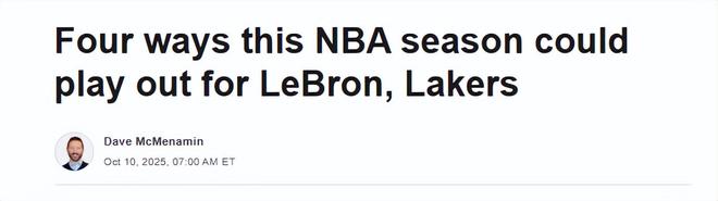 北京时间10月10日,ESPN撰文解析詹姆斯的未来选择,摆在这位湖人巨星面前的路有四条,詹姆斯究竟会选择哪一条呢? 上周,湖人队季前赛揭幕战在加利福尼亚州棕榈泉打响。赛前一小时的更衣室里,能证明詹姆斯存在的痕迹只有两样:挂在储物柜里的金色23号球衣,以及放在球衣下方座位上的三角形泡沫靠垫。 这晚,球衣派不上用场,但靠垫却派上了大用场。 湖人与太阳的训练营大名单中,共有42名球员。其中22人出生于2000年后,19人出生于1990年后,而詹姆斯一人出生于1984年——比太阳队主教练乔丹-奥特还要大五个月。 据湖人队主教练雷迪克透露,40岁的詹姆斯因臀部神经不适,在训练营前三天仅进行了轻度投篮训练,最终并未出战这场季前赛。但那个靠垫却“忙碌”了一整晚,无论是在更衣室的座位上,还是比赛时他坐在替补席末端的位置,靠垫都一直陪伴着他。 后来詹姆斯出现在更衣室时,穿着一件印有其最新耐克广告标语“Forever King”(永恒之王)的T恤。一名记者问他,是否已准备好开启史无前例的第23个NBA赛季。 詹姆斯还没来得及回答,湖人队后卫里夫斯就插话了:“你至少还能再打五个赛季。” 詹姆斯眼睛一亮,脸上露出笑容。 记者接着说:“为什么不再多打六七个赛季,打到30个赛季呢?” 里夫斯补充道:“对啊,再创一项纪录!” 詹姆斯转向里夫斯,笑着说:“我已经有纪录了。” 的确,NBA历史上约有5000名球员登场亮相,而詹姆斯是唯一一位征战23个赛季的球员。 过去22年,詹姆斯始终能掌控自己的职业生涯,但如今“最有利的选择”与“切实可行的方案”,或许正陷入矛盾。 以下是詹姆斯本赛季可能出现的四种走向—— 可能性一:打完2025-26赛季,以湖人球员身份退役 詹姆斯在湖人的这段时光里,饱受伤病困扰——7个赛季共缺席124场比赛,而他职业生涯前15年仅缺席71场。湖人管理层已换过四任主教练,管理层的交易与签约操作也有好有坏,但期间也不乏成功时刻。 2020年,湖人夺得总冠军,詹姆斯成为NBA历史首位在三支不同球队均获得总决赛MVP的球员;2023年,他超越贾巴尔,成为NBA历史得分王,湖人用盛大仪式为他庆祝;2024年,湖人用55号签选中布朗尼,帮詹姆斯实现了他此前对ESPN所说的“最后一个目标”——“我需要和我的儿子一起在球场上打球”。 2024年选秀前几个月,勇士队曾询问交易得到詹姆斯的可能性,但湖人明确表示“不感兴趣”。交易流言平息后,詹姆斯表达了对湖人的承诺:“我是一名湖人,过去六年我在这里很开心,希望这种状态能继续保持。” 湖人篮球运营总裁兼总经理佩林卡,在媒体日前几天的赛季开幕新闻发布会上,明确表达了球队的立场:“我们非常希望勒布朗的职业生涯能以‘湖人球员身份退役’收尾,这会是一段美好的故事。” 尽管多位接近詹姆斯的消息人士告诉ESPN,目前尚不确定他职业生涯的终点会如何,但如果詹姆斯仍有继续打球的意愿,本赛季湖人若能组建出尽可能强的阵容,或许能帮他坚定留队退役的想法。 本赛季,湖人可交易2031年或2032年的首轮签,且在本赛季的交易中,有五次首轮签互换权。但如果詹姆斯即将离队,球队可能不愿动用这些资产,去打造一支围绕东契奇与詹姆斯的争冠阵容。 若想寻找“詹姆斯是否会退役”的线索,目前有几个细节值得关注: 耐克“Forever King”广告中,旁白用过去时讲述詹姆斯的职业生涯——“他们称他为‘天选之子’……我们都是见证者”; 克利夫兰骑士队本赛季的“经典版”球衣,与詹姆斯2003-04赛季作为新秀加盟骑士时穿的款式相同; NBA赛程安排中,湖人本赛季首个主场比赛与最后一个客场比赛,对手均是库里领衔的勇士队——若詹姆斯真的迎来“最后一季”,这将是两位“时代标志性球员”的完美告别方式; 媒体日后,詹姆斯在Instagram上发布了一段当天的片段集锦,背景音乐是兰尼-克拉维茨的《It Ain't Over 'Til It's Over》(未到终点就不算结束),这或许是在暗示职业生涯即将落幕。 可能性二:打完2025-26赛季,与湖人续签新合同 佩林卡在新闻发布会上关于“詹姆斯能否以湖人身份退役”的回答,其实答非所问——记者问的是“湖人是否有意在2026年夏天与詹姆斯续约”。 据NBA薪资专家鲍比-马克斯透露,湖人下赛季预计有5000万美元左右的薪资空间,若詹姆斯寻求一份顶薪合同,这笔空间将被他全额占据。2026-27赛季,詹姆斯有资格签下一份三年1.88亿美元的合同,起薪为5810万美元。 尽管詹姆斯的巅峰期远超常人预期,但一个现实问题是:他的职业生涯时间线,能否与球队另外两位核心(均为25岁左右)同步? 消息人士告诉ESPN,东契奇与里夫斯都喜欢和詹姆斯并肩作战,希望继续保持合作关系。两人都没有问过詹姆斯“计划何时退役”——他们希望尊重詹姆斯的个人节奏。 东契奇从小就视詹姆斯为偶像,他很享受与詹姆斯的合作,且认为詹姆斯对湖人“当下争冠”至关重要。此外,对于“与即将退役的传奇球员搭档可能引发的关注与压力”,东契奇并不畏惧——他的新秀赛季恰逢德克-诺维茨基在达拉斯独行侠队的“告别赛季”,消息人士称,东契奇认为那段与诺维茨基共处的时光“价值连城”。 另外,若湖人本赛季夺冠(这将是詹姆斯职业生涯第五座总冠军奖杯),他会将其视为“完美结局”,还是会选择留队卫冕,冲击第六座总冠军(追平乔丹)? 可能性三:以湖人球员身份开启2025-26赛季,1月或2月申请交易或