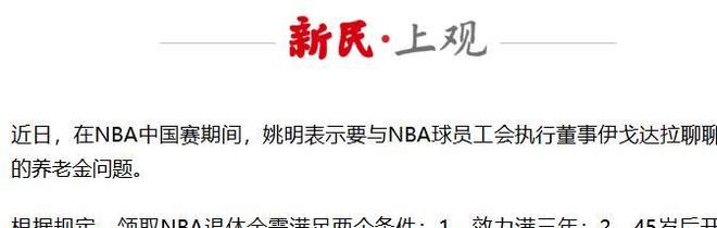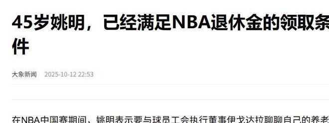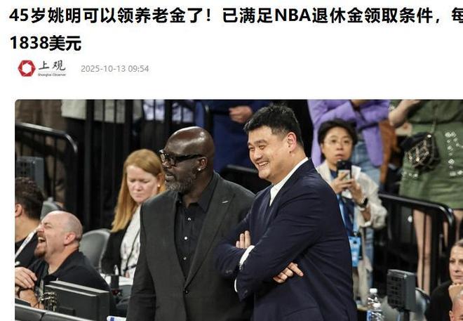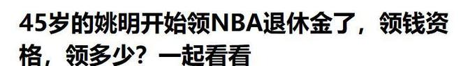 姚明开始从NBA领退休金了,效力3年+45岁每月可领1.3万元