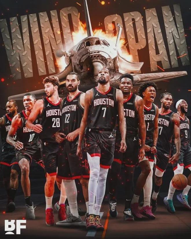 根据统计,火箭有多名球员臂展都达到了7英尺(约2.13米),包括阿门·汤普森、芬尼-史密斯、申京、小贾巴里·史密斯、杰夫·格林、伊森、亚当斯、卡佩拉和杜兰特。在“死亡五小”家喻户晓之后,火箭有可能开启“死亡五锋”时代。