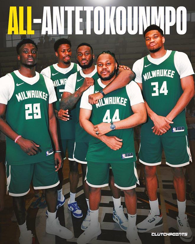 雷速体育10月16日讯 此前雄鹿用一份双向合同签下了字母哥扬尼斯·阿德托昆博的亚历克斯·阿德托昆博,美国媒体ClutchPoints表示雄鹿完全可以签下扬尼斯的兄弟五人,以此组成一套完整的阵容。 ClutchPoints:密尔沃基雄鹿与亚历克斯・阿德托昆博(Alex Antetokounmpo)签下一份双向合同,他将与两位哥哥萨纳西斯・阿德托昆博(Thanasis Antetokounmpo)、扬尼斯・阿德托昆博(Giannis Antetokounmpo)并肩作战。 这是NBA历史上首次出现三兄弟效力于同一支球队的情况,但故事或许还未就此结束。 阿德托昆博家族的另一位成员科斯塔斯・阿德托昆博(Kostas Antetokounmpo)目前正在海外为奥林匹亚科斯效力,且他已拥有NBA征战经验。此外,字母哥家族中的大哥弗朗西斯・阿德托昆博(Francis Antetokounmpo)也曾打过篮球,之后转型开启了职业足球生涯。 如今三位阿德托昆博兄弟已携手创造历史,若雄鹿队能将另外两位兄弟也纳入阵中,他们甚至能排出一套 “全阿德托昆博” 的首发阵容。 |