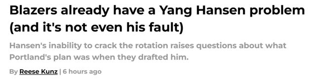 北京时间11月24日,开拓者队记Reese Kunz撰文报道杨瀚森目前的处境,认为他是开拓者现行策略的受害者,并表示球队留下罗威,实际上也阻碍了瀚森兑现潜力。以下是他的报道全文——