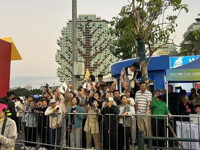 1 “一亿人”周末 12月28日的三亚,是被14000名跑者的脚步唤醒的。 清晨六点,天色未亮,参加三亚马拉松的跑者们已开始检录。大众熟悉的刘畊宏从直播间来到起跑线前,带领跑者和观众热身。动感的节奏、充满活力的舞步,驱散了现场的最后一丝困意。 上午九点,半程马拉松终点天涯海角景区陆续迎来冲线的跑者。同时间,来三亚度假的游客们也开始活跃起来,景区内“天涯”与“海角”的标志性石刻前渐渐聚满拍照打卡的人群。 中午时分,参加全程马拉松的跑者们陆续完赛,道路陆续解封,城市照常流动。而此刻,另一群精力充沛的年轻人刚刚苏醒,她们将精心打扮,背上沉重的相机,定制的“物料”和“痛包”出发。 她们将前往TF家族新年演唱会,时代少年团、TOP登陆少年等当红团体在三亚连唱三天。每天下午两点,通往白鹭体育场的道路便开始拥堵,据说不少外卖小哥甚至会暂放送餐业务,骑着小电驴加入接送观众的行列中。 都在三亚。擅长“特种兵”的时代年轻人,和体能充沛的马拉松跑者,都在这个周末汇聚在这座城市。