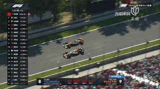 第11圈,皮亚斯特里终于攻破角田强硬的防守,在一号弯前的DRS对其完成超越升至第8名。