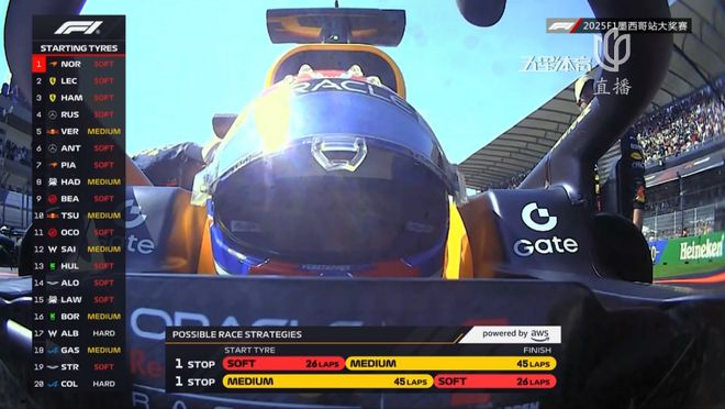 在轮胎选择方面,排名前十的车手中三位红牛系车手统一使用黄胎起步!其余选手均使用红胎。为了争夺WDC,维斯塔潘虽然坦言赛车状态不佳,但依旧希望能用这样的轮胎策略为自己博取一些机会!