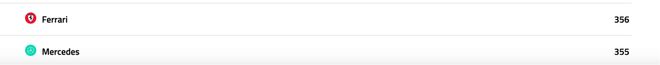 好在奥斯汀和墨西哥城两个比赛周末,勒克莱尔稳定的发挥为法拉利带来了宝贵的积分,帮助车队以1分优势重返积分榜第二名。而车队亚军也成了现阶段法拉利不变的目标。不过,梅奔和红牛紧随其后,也都在盯着这个位置。如今维斯塔潘为了冲击最后的车手总冠军,场场都能拿大分,如果角田裕毅还能再贡献一点积分的话,红牛将是车队积分亚军的有力竞争者。法拉利能否保住现在车队的名次,道阻且长...