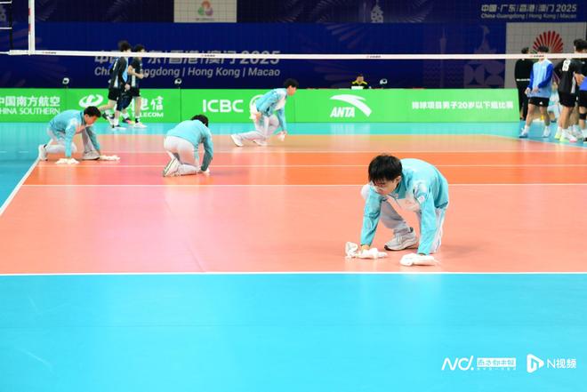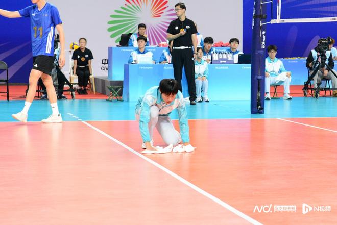 于是,在运动员们一次次精彩的传球与扣杀之间,总有这些反应迅捷、配合默契的蓝色身影反复穿梭。而在紧张的比赛节奏中,也流淌着温暖的瞬间。“每次我们上前擦地或捡球时,总能收获运动员们一句真诚的‘谢谢’,”赖俊武分享道,“这份来自运动员的尊重与善意,让所有的汗水都有了价值。”