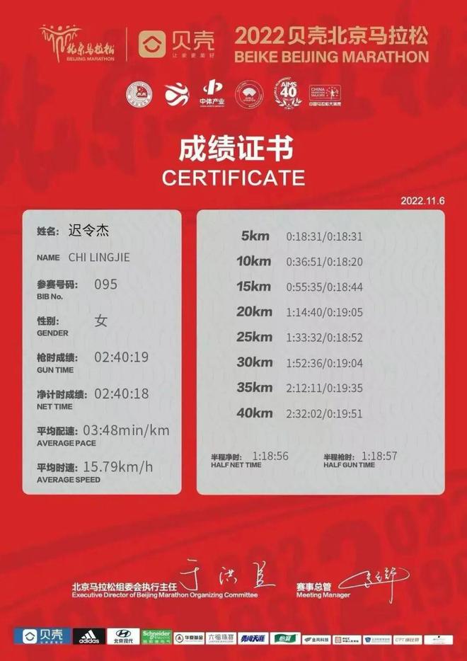 当时的这张截图,与这份打卡记录 是迟令杰马拉松的高光时刻 一家国内知名运动品牌迅速与她签约,一切似乎都顺风顺水,只有一个小小问题。因为测试赛成绩没有田协认证,合同要求她必须在正式比赛中跑进2小时40分,才能持续获得支持。 自此,迟令杰开始了她职业生涯中最痛苦、最漫长的一次撞墙。 “一开始执着,后面成了一种执念。”迟令杰回忆。她对自己更狠了,训练强度越拉越高,但身体率先发出了抗议。起初是脚踝发酸,她以为是鞋带系太紧,松了松,可一上赛道又不得不勒紧。跑完脚就开始疼,后来连路都走不了。 但奇怪的是,她的身体似乎也被这股执念所绑架。只要一进入高强度的间歇课,热身结束后,她竟又能咬紧牙关,奇迹般地跑下来。这种矛盾的状态,让她误以为自己“还行”,还能撑。她就这么撑着、扛着,直到膝盖、脚踝的伤病全面爆发,“像一个运转中的机器从高处滚落,摔得七零八落,难以修复。” 成绩停滞不前,甚至开始退步。对一个严肃的运动员来说,这是最残忍的惩罚。那段时间,她常常一个人躲在房间里哭泣,哭完后,擦干眼泪,一言不发地回到跑道。她甚至会跑到住所附近山里的墓地去,起初觉得恐惧,后来竟开始习惯,甚至在那些墓碑前奔跑行走,以此寻求一种诡异的、与世隔绝的冷静。 她距离撞破这堵墙最近,也是最痛苦的一次,是2022年的北京马拉松。在那条承载了无数梦想的赛道上,她拼尽了最后一丝力气,冲过终点时,计时器上的数字定格在2小时40分18秒。 只差18秒。 18秒,不过是几次呼吸的时间,却像一道无法逾越的天堑,将她与那个承诺过的未来彻底隔开。希望在触手可及的瞬间被碾碎,这比从未见过希望,更加令人绝望。
