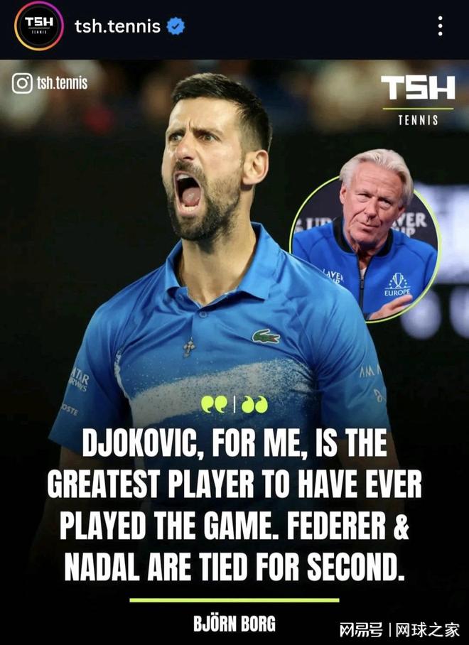 比约·博格,这位上古传奇,则从网球史的纵深给出了自己的排序:“德约科维奇是有史以来最伟大的球员。费德勒和纳达尔并排第二。”这份来自不同时代王者的认可,有着格外沉重的分量。