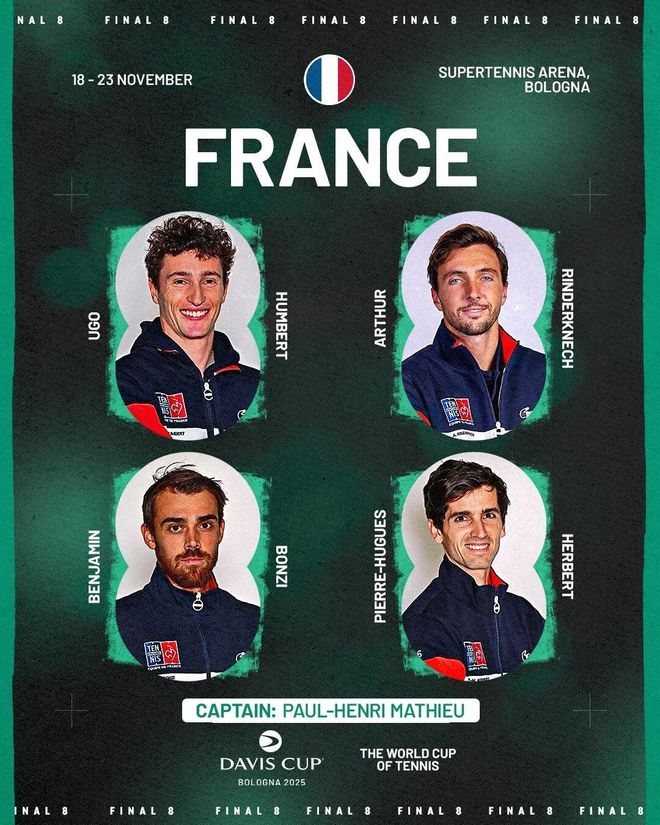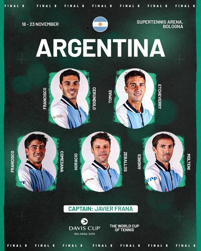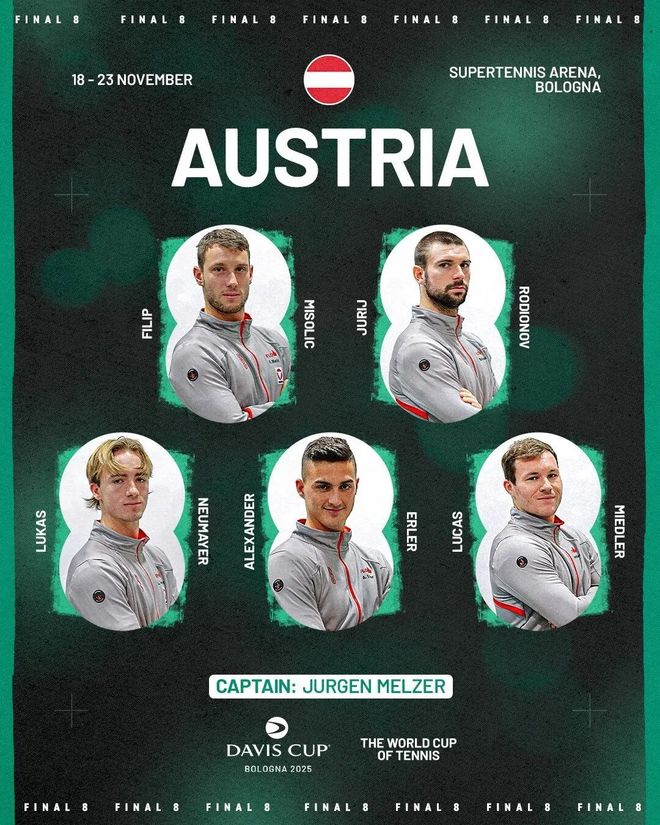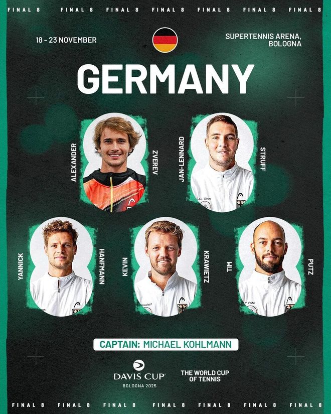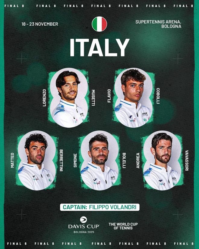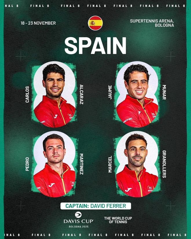 北京时间11月18日,2025戴维斯杯总决赛正式揭幕。爱奇艺体育新媒体独家直播。 世界最高级别网球男子团体赛事迎来今年赛事的最高潮!卫冕冠军意大利队主场作战志在三连冠!角逐决赛的八个国家相继公布参赛阵容,世界第一阿尔卡拉斯、世界第三兹维列夫领衔多位网坛最顶尖球星,向2025世界团体冠军头衔发起全力冲击。 直播平台:爱奇艺体育 比赛地点:意大利博洛尼亚 比赛赛程(北京时间): 第1日 11月18日 23:00 1/4决赛 [3]法国 vs 比利时 第2日 11月19日 23:00 1/4决赛 [1]意大利 vs 奥地利 第3日 11月20日 17:00 1/4决赛 西班牙 vs 捷克[4] 11月21日 不早于00:00 1/4决赛 阿根廷 vs 德国[2] 第4日 11月21日 23:00 半决赛 法国or比利时 vs 意大利or奥地利 第5日 11月22日 19:00 半决赛 西班牙or捷克 vs 阿根廷or德国 第6日 11月23日 22:00 决赛 半决赛1胜者 vs 半决赛2胜者 在上半区的首场四分之一决赛中,由安贝尔和林德克内希领衔的法国队,将迎战拥有博格斯和科利农的比利时队。在另一场上半区的四分之一决赛中,东道主兼卫冕世界冠军意大利队将由穆塞蒂和科博利领衔,对阵拥有米索利奇和罗迪奥诺夫的奥地利队。 下半区方面,阿尔卡拉斯将领衔西班牙队,世界第一的阿卡因伤可能仅仅会出战单打,对阵一支拥有TOP20球星莱赫卡和门希克的捷克队。在最后一场四分之一决赛中,施特鲁夫和汉夫曼将携手兹维列夫为德国队出战,对阵阿根廷队的F.塞伦多洛和埃切弗里。 2025戴维斯杯决赛八强参赛阵容名单: 意大利队:沃兰德里(队长) 穆塞蒂(退赛)、科博利、索内戈、贝雷蒂尼、伯莱里、瓦索里里 捷克队:伯蒂奇(队长) 莱赫卡、门希克、马哈奇、科普里瓦、帕夫拉塞克 阿根廷队:弗拉纳(队长) F·塞伦多洛、埃切维里、科梅萨纳、泽巴洛斯、莫尔泰尼 法国队:马蒂厄(队长) 安贝尔、林德克内希、邦齐、赫伯特 比利时队:达尔西斯(队长) 贝尔赫斯、科利尼翁、吉勒、维列根、布洛克斯 西班牙队:费雷尔(队长) 阿尔卡拉斯、穆纳尔、马丁内斯、格拉诺勒斯 奥地利队:梅尔泽(队长) 米索利奇、罗迪奥诺夫、诺伊迈尔、埃勒尔、米德勒 德国队:科尔曼(队长) 兹维列夫、斯特鲁夫、汉夫曼、克拉维茨、普茨 |