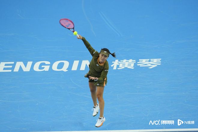 朱琳在比赛中。 第二场半决赛,北京选手高馨妤6:3、6:4击败天津选手杨一迪,同样为首次打进全运会决赛,赛后她表示打进决赛完全超出了预期,“进决赛肯定是开心的,但是明天还有一场,最后一战。因为四年一次,四年会发生太多事情了,所以只是希望明天能把自己最真实的水平发挥出来,不留遗憾。”