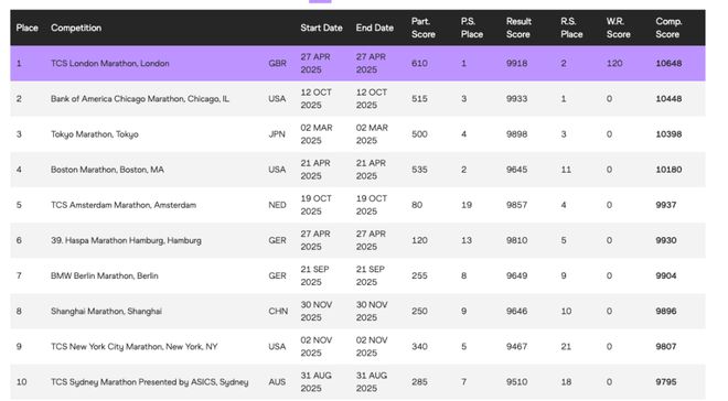 近日,在世界田联发布的2025年全球马拉松赛事排名中,上海马拉松首次跻身全球前十强,位居第八位,创造了中国马拉松赛事在该权威榜单上的最佳成绩。