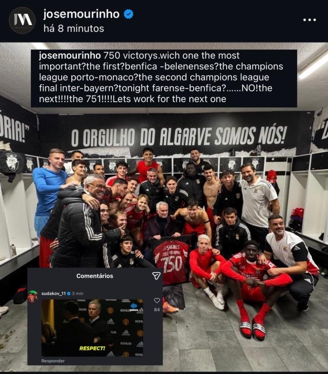 尊重!穆里尼奥取得执教生涯750胜 国际足球其他 12-18 10:53 葡萄牙杯第5轮,本菲卡客场2比0轻取葡甲球队法鲁人,穆里尼奥取得执教生涯第750场胜利(1214场,胜率62%)。事后他在社交媒体上发图庆祝,并写道:“750场胜利哪一场最重要?第一场?本菲卡对贝伦人?波尔图对摩纳哥的欧冠决赛?国际米兰对拜仁的第二场欧冠决赛?今天的法鲁人对本菲卡?不!是下一场!第751场!” 本菲卡中场苏达科夫则在评论区回复了一张穆帅“尊重”的名场面表情图。