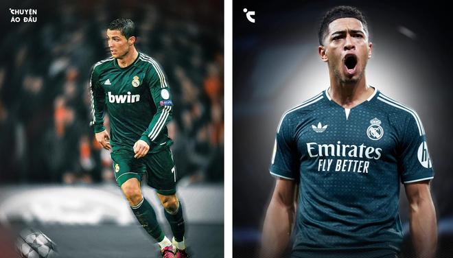 此外,越南球衣账号Chuyện Áo Đấu还制作了贝林厄姆身穿皇马2026-27赛季第三球衣的概念图,并将其与2012-13赛季的绿色第三球衣进行对比。两者在配色风格上颇为相似,而那款2012-13赛季欧冠客场球衣,正是由C罗穿着而被球迷广泛熟知。