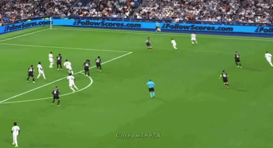 从欧冠官方给出的排兵布阵来看,皇马442出战,贝林厄姆、姆巴佩双前锋,居勒尔和琼阿梅尼在中场一攻一守。居勒尔踢了74分钟,送出6次关键传球,传球成功率高达95%。 居勒尔的脚法精湛,包办皇马的角球主罚权,给巴尔韦德、米利唐创造机会。更难得的是,20岁的居勒尔有着大师般的脚法、视野,凭借出色的大局观,让场面豁然开朗: 当双方球员聚集在一侧时,居勒尔的大范围横向转移,能制造进攻空间。