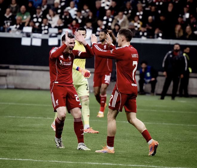 利物浦本场攻势迅猛,控球率65%-35%占优,射门18-4,利物浦14次击中门框范围以内,法兰克福仅有1射正。比赛的第26分钟,33岁的格策分球助攻克里斯滕森抽射破门,利物浦0-1。第35分钟,罗伯逊助攻埃基蒂克单刀推射进球,攻破老东家球门,比分来到1-1。4分钟后,加克波角球助攻范戴克头球建功,利物浦2-1反超。