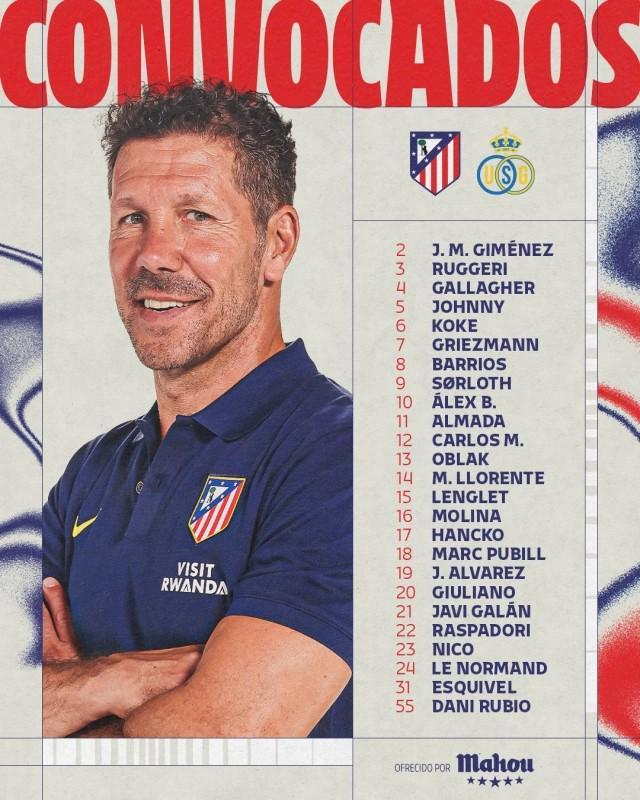 【名单】蜘蛛、格子领衔马竞欧冠客战