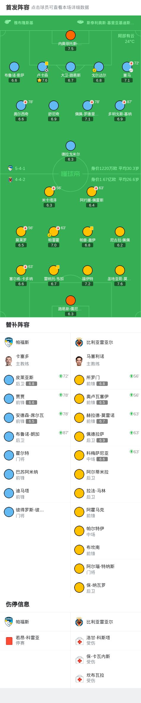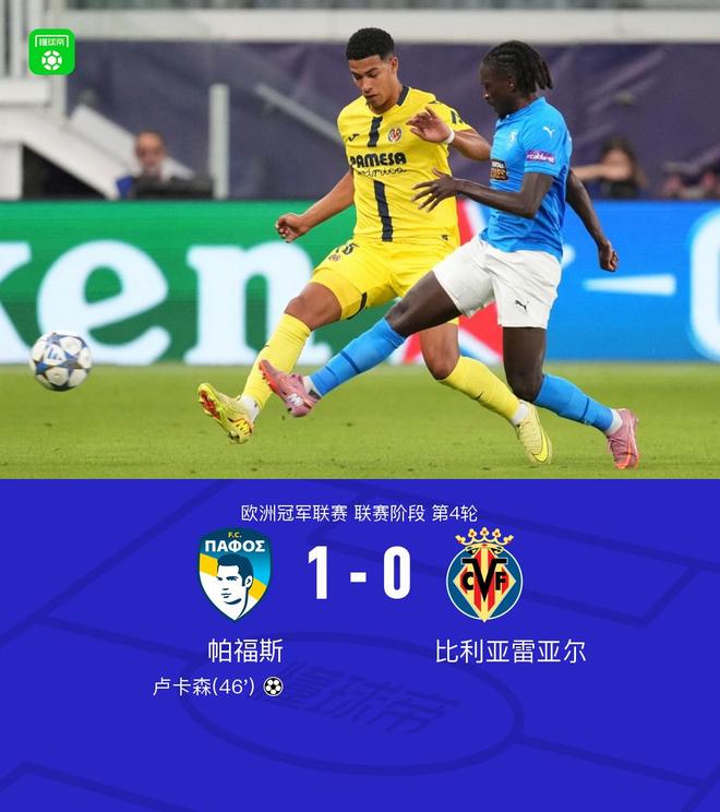 北京时间11月6日,欧洲冠军联赛联赛阶段第4轮展开较量,帕福斯迎战比利亚雷亚尔。下半场塞马开出角球,卢卡森头球破门。最终帕福斯1-0战胜比利亚雷亚尔斩获队史欧冠首胜 关键事件 第46分钟,塞马开出角球,卢卡森头球破门,帕福斯1-0比利亚雷亚尔