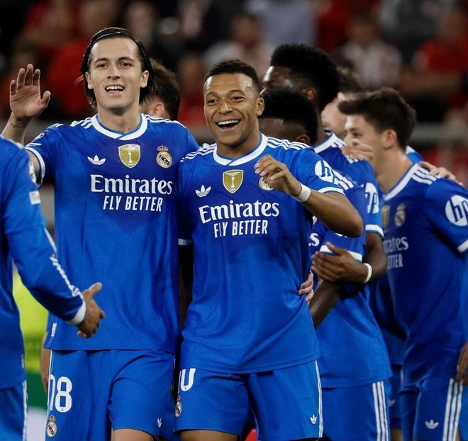 奥林匹亚科斯3:4皇马 相比较之下,皇马则差点翻车,好在他们有状态正佳的姆巴佩。来到希腊的客场,皇马第8分钟便被对手的世界波攻破了城门;姆巴佩挺身而出,在第22-29分钟的头顶脚踢连进3球迅速将皇马拉回到了领先位置。7分钟时间戴帽让姆巴佩与萨拉赫并列欧冠最快戴帽第一纪录,5次欧冠戴帽也仅次C罗,梅西和莱万。下半场国米旧将塔雷米头槌扳回一城,紧接着维尼修斯又助攻姆巴佩再下一城上演大四喜,卡埃比终场前甩头破门为奥林匹亚科斯再度缩小比分差距。皇马客场4-3击败奥林匹亚科斯,12分冲进了前八的晋级区。
